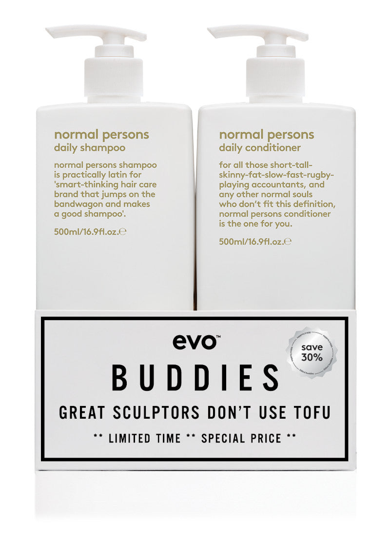 Vi har fundet Evo – Normal Persons Buddies Shampoo Conditioner X – Ml – Hos Frisøren Baronen fra Evo hos Frisøren og Baronen i kategorien Sæt Tilbud. Normal persons daily shampookoncepten dybderensende shampoo, der fjerner rester af produkter, og får hovedbunden i balance.anbefalet tilalle hårtyper, specielt fedtet hår.fordelerenser i dybden, fjerner rester af produkter, og får hår og hovedbund i balan
